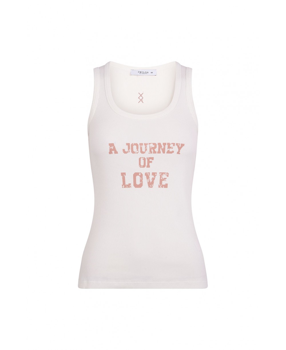 El corazón de la colección se convierte en print con esta camiseta de tirantes estampada con el claim “A JOURNEY OF LOVE”. Sencilla, directa y perfecta para los días de calor, está confeccionada en algodón orgánico teñido artesanalmente.