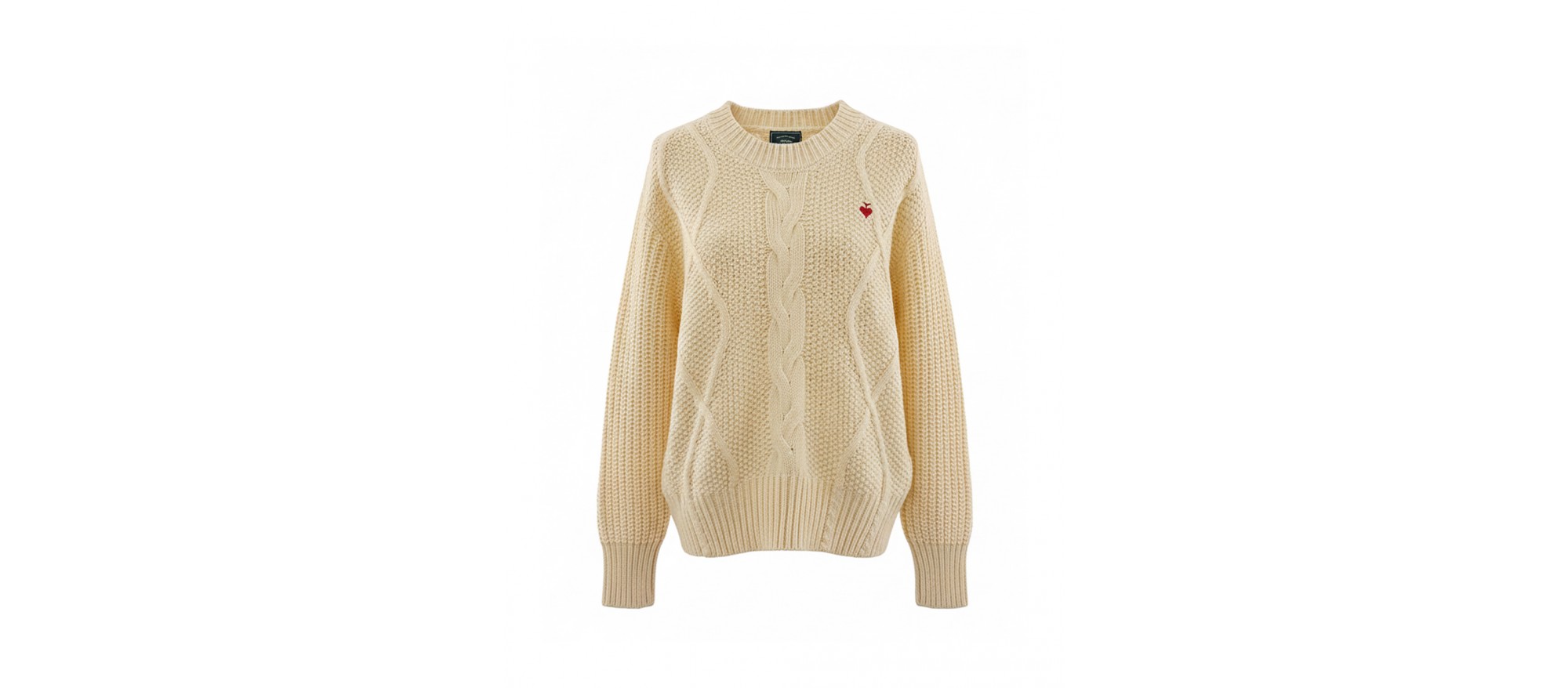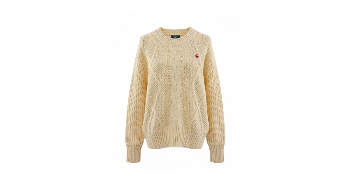 El detalle de trenza en el punto convierte este jersey en una pieza con personalidad, manteniendo la pureza del color crudo para un estilo natural y elegante.